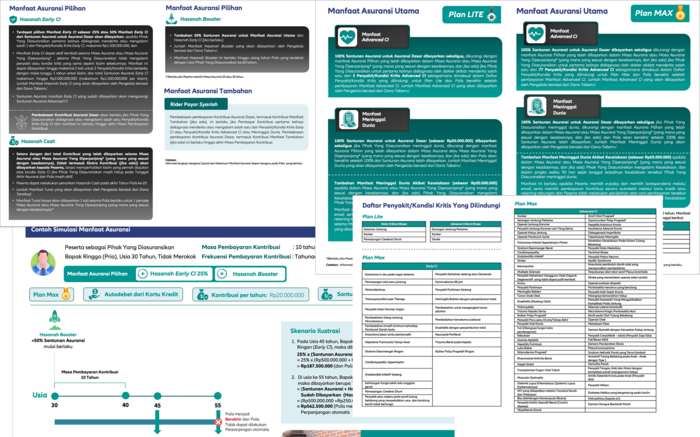 *Besaran premi (tahunan atau bulanan) dan manfaat tergantung usia, kondisi kesehatan, dan kebutuhan keluarga.